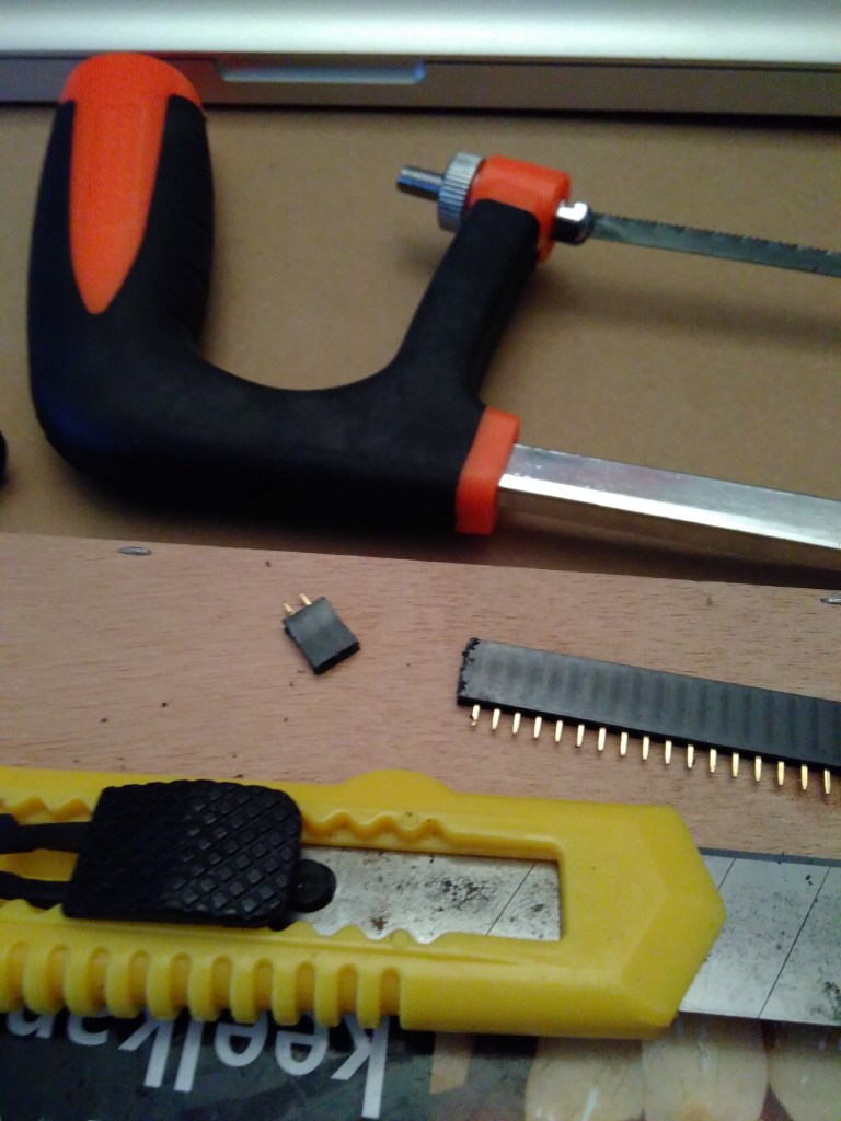 I sawed some coper boards and started to solder my little hubs with 5 connector-potentiometer per strip: